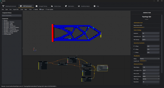 https://github.com/kutaydemir07/PyLCSS PyLCSS (Python Low-Code System Solutions) is a professional engineering design platform. It allows engineers to model complex multidisciplinary systems through a node-based visual interface, run parametric CAD and FEA simulations, explore high-dimensional Solution Spaces, and optimise designs using 7 different algorithms — all within a single desktop application.